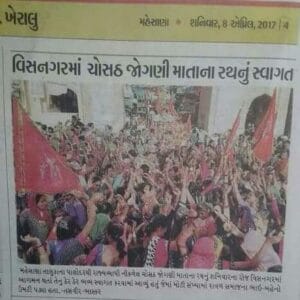 માં જોગણી ના રથ નુ પરિભ્રમણ ની જુની યાદો. ૮ એપ્રિલ 2017 ના રોજ શનિવારે વીસનગર શહેરમાં જોગણી ભક્ત ભરત ભાઈ વીસનગર માં ને દાંડવ